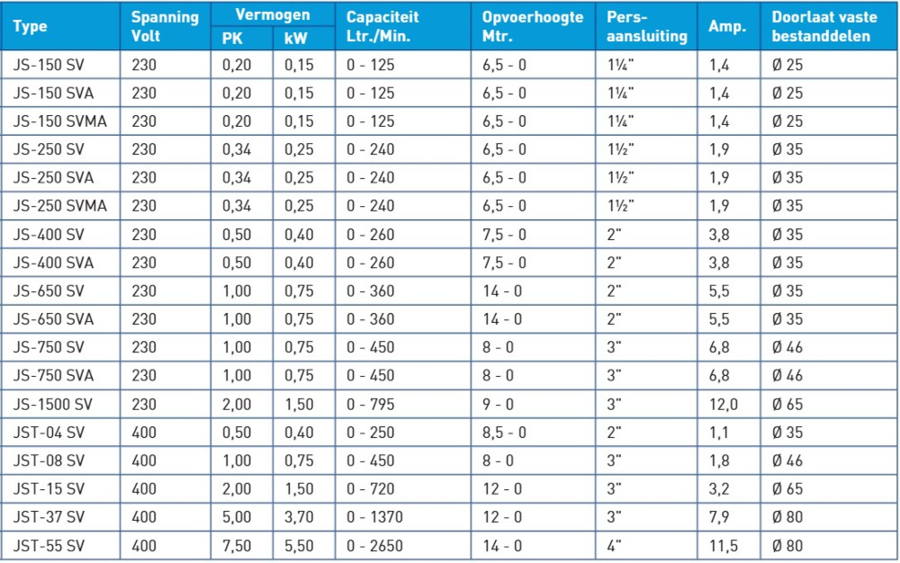 Robu dompelpomp JS 250 SVMA - max 240 ltr p/minuut